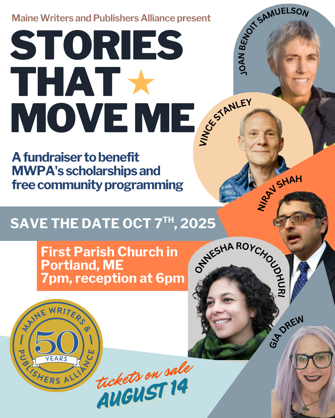Stories That Move Me will be an authentic, dynamic, and broadly inclusive night of storytelling, a reminder of what makes us human. This special event will raise money for MWPA’s scholarships and fellowships, which support emerging writers and seed our next generation of storytellers, as well as free community programs and events like the Maine Lit Fest, which will return in the fall of 2026.